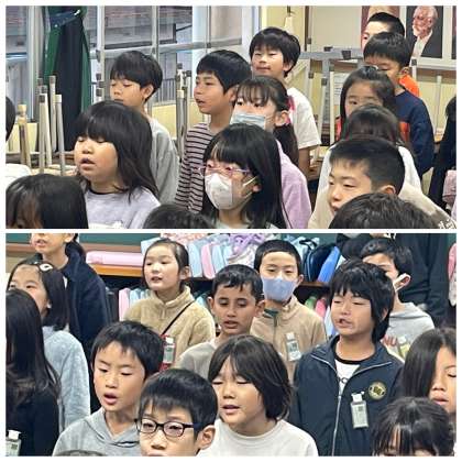 12月15日(金) 3年 学年ハーモニータイム3 公開日 2023/12/15 更新日 2023/12/15 3年 3年生の学年ハーモニータイムのようすスナップです!4クラスで歌うとすごい力になることがわかりましたね。そのパワーが誇らしいです!