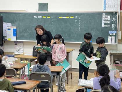 1年1組の学級の時間のようすです。お楽しみ会のフルーツバスケットやむかしあそびの会の準備、司会の練習をしていました。楽しい会をみんなで作り上げることができるようにがんばっていましたね。