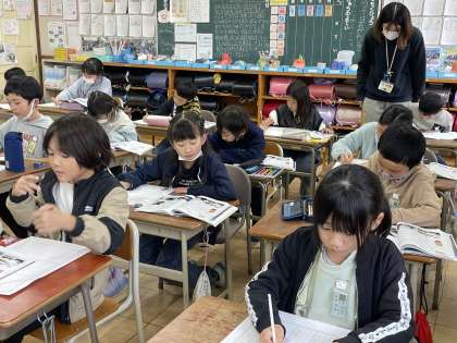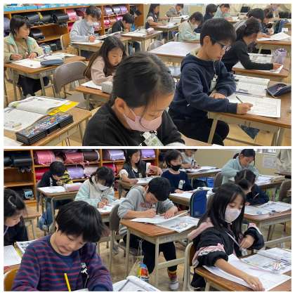 3年生の社会の授業のようすです。警察官の仕事について学んだことや調べたことをレポートにまとめていました。一番伝えたいお仕事の内容はどんなことだったかな?