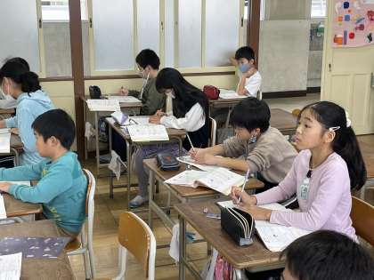 12月15日(金) 4年 あまりの小数点 公開日 2023/12/15 更新日 2023/12/15 4年 4年生の算数の授業のようすです。「あまりの大きさについて考えよう」というめあてで学習を進めていました。あまりの小数点は、わられる数にそろえてうつことがわかりましたね。