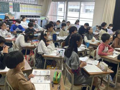 5年生の社会の授業のようすです。「ニュース番組ができるまでの流れを調べよう」というめあてで学習を進めていました。情報収集や編集会議、原稿の作成、映像の編集などいろんなお仕事があることがわかりましたね。