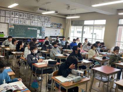 6年生の社会の授業のようすです。「戦争はどのように世界に広がっていったのだろうか」というテーマで学習を進めていました。第二次世界大戦や太平洋戦争の時代の外国と日本のかかわりについて考えました。