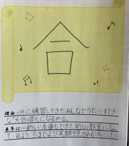 ひがしっ子のみなさんは、この1年を漢字1文字にするとどんな漢字になりそうですか?家族で話題にすると楽しい時間を過ごせそうですね。5年生のある教室では、自分の2023年の漢字を選び、その理由を書いた掲示物が紹介されていました。週末のウェブサイトの記事で紹介したいと思います。
