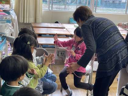 1年生のむかしあそびの会の「あやとり」講座のようすスナップです。