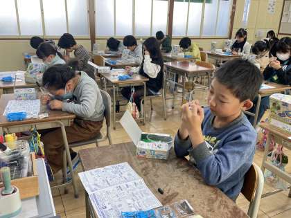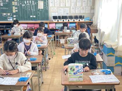 12月19日(火) 3年 まめでんきゅうとじしゃく 公開日 2023/12/19 更新日 2023/12/19 3年 3年生の理科の授業のようすです。「まめでんきゅうとじしゃく」の学習でつかう実験キッドに名前を書いて、どんなことに使うか予想していました。いろいろな道具があってワクワクしていました。3学期の学習が楽しみになりましたね。