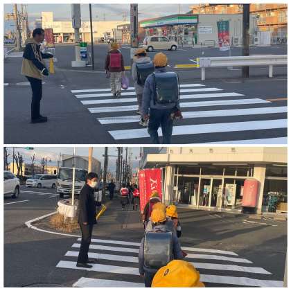 寒気に包まれた12月らしい冷たい朝になりました。そんな中、PTA旗ボランティアさんや地域見守り隊のみなさんはいつもと変わらぬあたたかい笑顔と声かけで子どもたちをむかえ、安全な横断をサポートしてくださいました。おかげで今日も元気に一日をスタートすることができます。ありがとうございました。