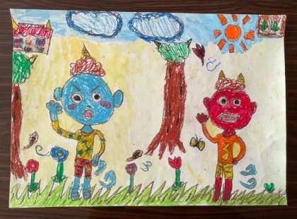 1月6日(土) 2年 読書感想画【冬休みウェブ展覧会296】 公開日 2024/01/06 更新日 2024/01/06 2年 2年生が2学期に取り組んだ読書感想画の一部を紹介します。「おにのしょうがっこう」を読んで、描きたいものを大きく表現できるようにがんばりました!