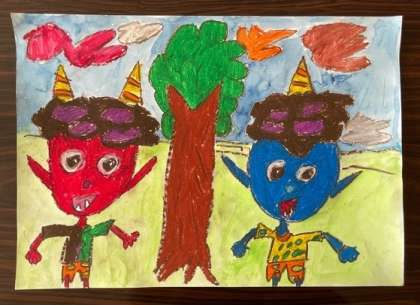 1月7日(日) 2年 読書感想画【冬休みウェブ展覧会313】 公開日 2024/01/07 更新日 2024/01/07 2年 2年生が2学期に取り組んだ読書感想画の一部を紹介します。「おにのしょうがっこう」を読んで、描きたいものを大きく表現できるようにがんばりました!