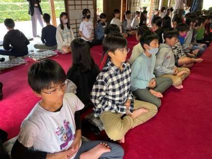 座禅をしたあとに飲んだお茶は、とっても苦くて飲みきれませんでした。どんだけ頑張っても飲めなくて結局残してしまいました。でも、お茶菓子は甘くてとても美味しかったです。最後に「良いお手前でした。」言いました。お茶を最後まで飲めなくて悔しかったです。