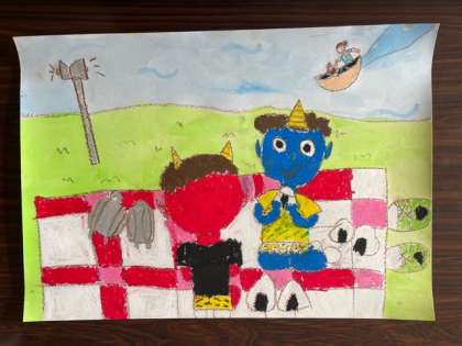 1月6日(土) 2年 読書感想画【冬休みウェブ展覧会295】 公開日 2024/01/06 更新日 2024/01/06 2年 2年生が2学期に取り組んだ読書感想画の一部を紹介します。「おにのしょうがっこう」を読んで、描きたいものを大きく表現できるようにがんばりました!