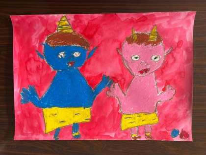 1月8日(月・祝) 2年 読書感想画【冬休みウェブ展覧会327】 公開日 2024/01/08 更新日 2024/01/08 2年 2年生が2学期に取り組んだ読書感想画の一部を紹介します。「おにのしょうがっこう」を読んで、描きたいものを大きく表現できるようにがんばりました!