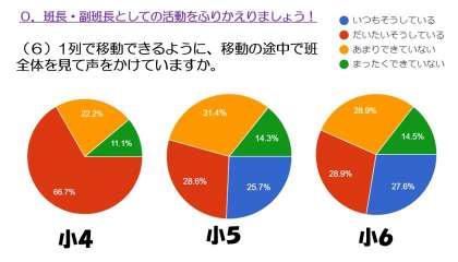 ※回答者は班長副班長を務めている4〜6年生の一部です。(回答数は6年生76人、5年生35人、4年生9人)