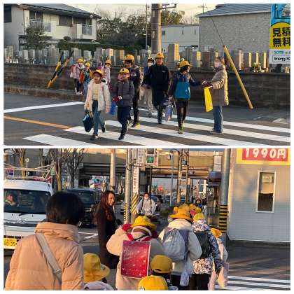 今日も冬らしい冷え込みが厳しい朝になりました。校区の各交差点では、早くからPTA旗ボランティアさんや地域見守り隊のみなさんが子どもたちをむかえ、やさしい声かけをしながら安全な横断をサポートしてくださいました。感謝感謝です!ありがとうございました。