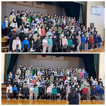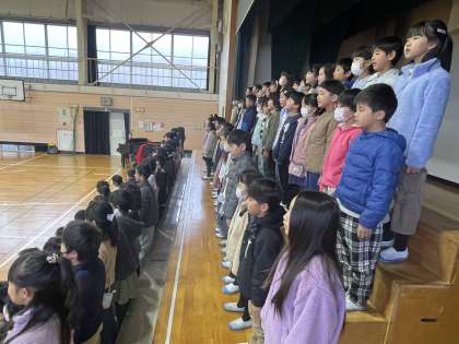 今日から学習発表会の全体練習が始まりました。1時間目は3年生の練習でした。とても寒い体育館でしたが、子どもたちのあたたかい笑顔とエネルギッシュな響きの歌声に、心があたたかくなりました。