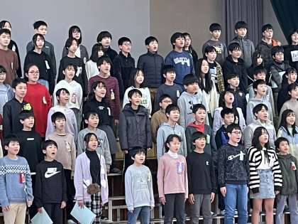 1月12日(金) 6年 学習発表会に向けて 公開日 2024/01/12 更新日 2024/01/12 6年 今日の6時間目、6年生の学年音楽の授業のようすです。ステージに立つ位置を決めた後、学習発表会で演奏する曲の練習を行いました。迫力のある歌声に思わず身をのりだして聞き入ってしまいました。流石6年生!6年間を締めくくる学習発表会にふさわしいステージになりそうでワクワクします。