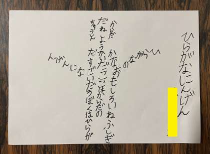 1月13日(土) 3年ウェブ展覧会【詩の作品】 公開日 2024/01/13 更新日 2024/01/13 3年 3年生の国語で作った詩の作品を紹介します。2学期の国語の授業で作った詩です。どんな工夫があるかわかるかな!? 正解はこちら 閉じる 文字や言葉を絵のように並べた詩だね!