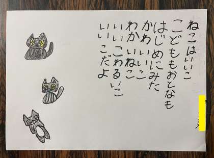 1月13日(土) 3年ウェブ展覧会【詩の作品】 公開日 2024/01/13 更新日 2024/01/13 3年 3年生の国語で作った詩の作品を紹介します。2学期の国語の授業で作った詩です。どんな工夫があるかわかるかな!? ここをクリックしてみよう! 閉じる 行の最初の文字に、言葉がかくれていますね!