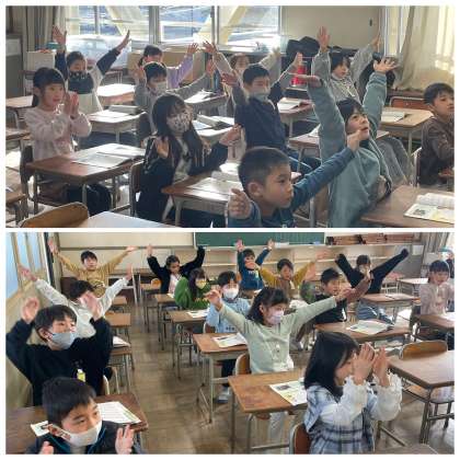 1月15日(月) 2年 みぶりをつけてウンパッパ 公開日 2024/01/15 更新日 2024/01/15 2年 2年生の音楽の授業のようすです。「みぶりをつけてみんなでうたおう」というめあてで、「ウンパッパ」の曲を楽しんでいました。