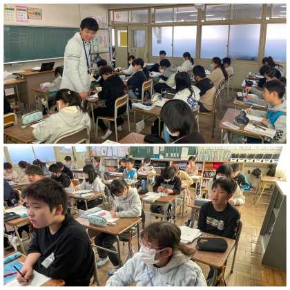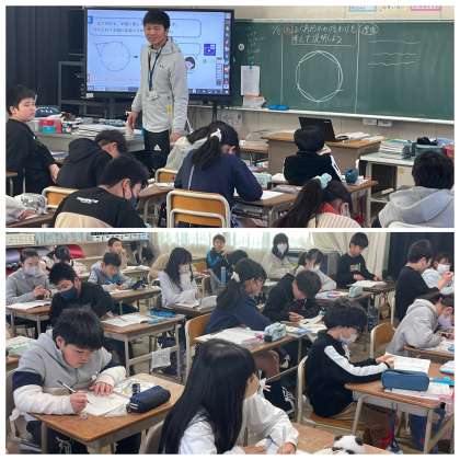 5年生の算数の授業のようすです。「コンパスを使って正六角形が欠けるわけを考えて説明しよう」というめあてで学習を進めていました。今まで学んだ図形の性質のどんなことが利用できそうか、頭をひねっていました。