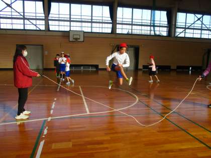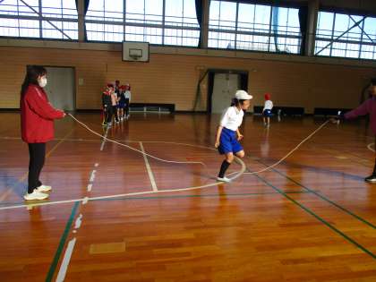 1月15日(月)体育 ひまわり組 公開日 2024/01/15 更新日 2024/01/15 ひまわり組 今日のひまわり組の体育の様子です。大縄を跳んでいるところです。今日から新しい大繩を使って、いろんな跳び方をしながら、慣れているところです。 ひまわり組