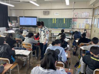 5年4組の国語の授業のようすです。「事例と意見の関係をおさえて読もう」というめあてで学習を進めていました。文章を深く読み取ることができましたね。