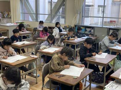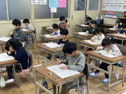 1年3組と4組の1時間目、国語のテストのようすスナップです!