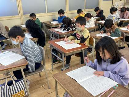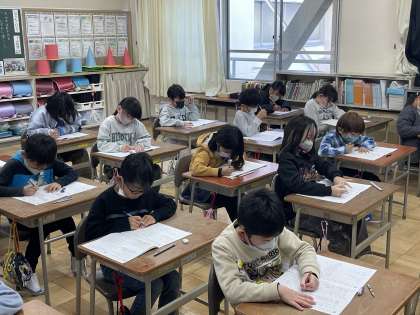 2年3組と4組の1時間目、国語のテストのようすスナップです!