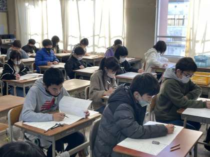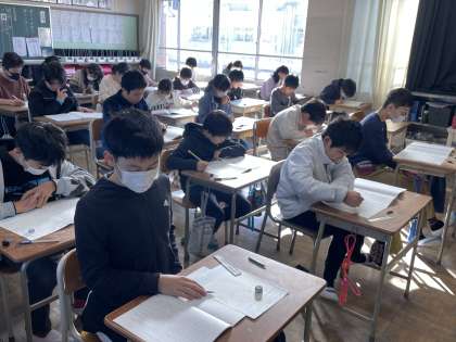 1月17日(水) 6年生 標準学力テストに挑戦 公開日 2024/01/17 更新日 2024/01/17 6年 6年生(上から1,2,3組)の1時間目、国語の標準学力テストのようすです。問題文をよく読んで、一生懸命問題に取り組んできました。標準学力テストは、学習指導要領に示された基礎的・基本的な内容の到達状況を、適切に把握できるように作成された学力検査です。結果をもとに、小学校の学習をしっかりと定着させて中学校に進学できるようにがんばっていきましょう!