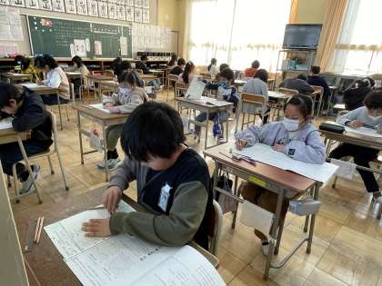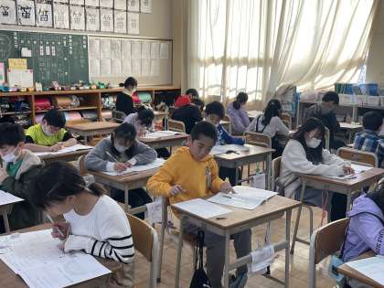 4年3組と4組の2時間目、算数のテストのようすスナップです!