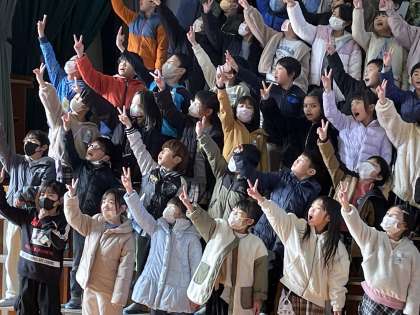 2年生の学年音楽のようすスナップです!ニコニコの笑顔ですてきな歌を表現してくれていました。