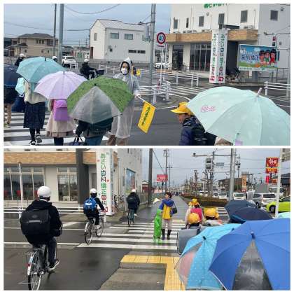 1月18日(木) 見守りありがとうございます! 公開日 2024/01/18 更新日 2024/01/18 PTA 見守り活動のようすスナップです。雨の中の活動になりました。安全な登校サポートへのご協力ありがとうございました。