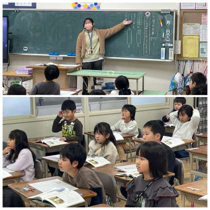 1月18日(木) 1-2 たぬきの糸車 公開日 2024/01/18 更新日 2024/01/18 1年 1年2組の国語の授業のようすです。たぬきの糸車の文章について「だい3ばめんをせいりしよう」というめあてで読み取りを深めていました。