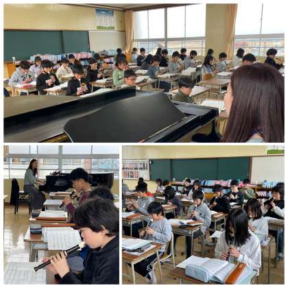 6年生の音楽の授業のようすです。ソプラノリコーダーでカノンの演奏をしていました。3つのパートに分かれて、音の重なりを感じながら演奏することができましたね。うっとりと聞き惚れてしまいましたよ♪