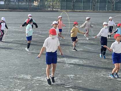 1月22日(月) 2年 リズムなわとび 公開日 2024/01/22 更新日 2024/01/22 2年 2年生の体育の授業のようすです。音楽に合わせてリズムなわとびに挑戦していました。たくさん練習して自信を深めることができましたね。