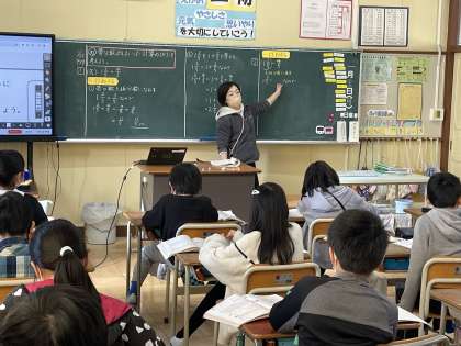 1月22日(月) 4年 帯分数の計算 公開日 2024/01/22 更新日 2024/01/22 4年 4年生の算数の授業のようすです。「帯分数が入った式の計算ができるようになろう」というめあてで学習を進めていました。