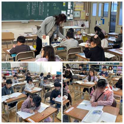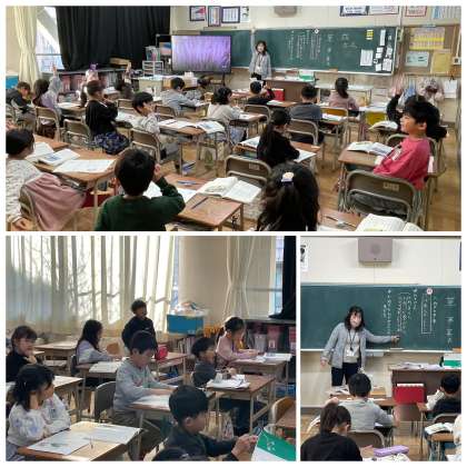 1月23日(火) 1年 たぬきの糸車 公開日 2024/01/23 更新日 2024/01/23 1年 1年生の国語の授業のようすです。「たぬきの糸車の三ばめんをよもう」というめあてで学習を進めていました。