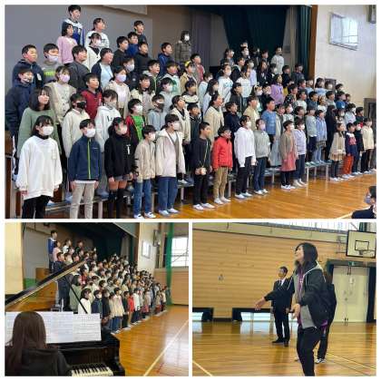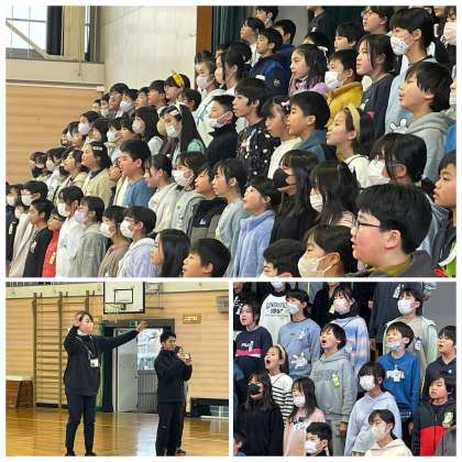 1月24日(水) 5年 校内発表会リハーサル 公開日 2024/01/24 更新日 2024/01/24 5年 今日の5時間目、5年生と6年生で学習発表会のリハーサルを行いました。5年生の息の合った歌声と美しいハーモニーに6年生から大きな拍手が送られていました。立派に歌い上げる5年生を見て、6年生はとてもよい刺激を受けたようです。他学年のみなさんも明日の5年生の校内発表会を楽しみにしていてくださいね。