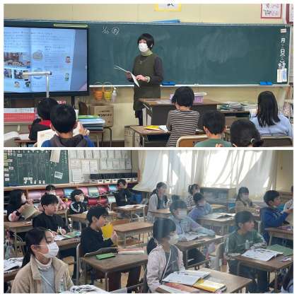 1月26日(金) 3-4 道具カードを作ろう 公開日 2024/01/26 更新日 2024/01/26 3年 3年4組の社会の授業のようすです。「道具カードを作ろう」というめあてで、昔と今の道具を比較してわかったことや感じたことをまとめていました。