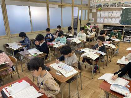 2年2組の国語の授業のようすです。校務主任の先生と一緒に「二つのかん字を合体させよう」というめあてで学習していました。明日の授業参観も校務主任の先生と行います。今日のように元気に楽しく授業をがんばろうね!