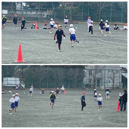 3年1組の体育の授業のようすです。限られた時間の中で何往復できるか挑戦したあと、ボール運動を楽しみました。寒さに負けず元気に体を動かすことができましたね。