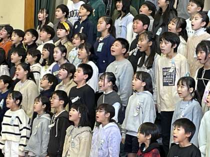 ◇どの子も皆一生懸命歌っているなと、体を揺らしながら歌っている姿に感動しました。恥ずかしがることなく大きな声で胸を張って歌っていて良かったです、我が子は歌も大好きで家でもよく歌を歌っていますが合唱は全く別ですね、ホントに素晴らしかったです。「六年の歌を絶対に聞いてね」と全学年の歌を聞いて帰って来た日に興奮して伝えてくれたんです。歌は人の心をうつものですね。素晴らしいと思いました。