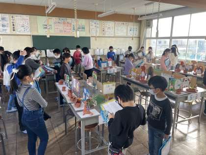 3年生と4年生の児童作品鑑賞会のようすスナップです!