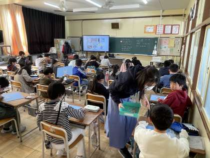 2月6日(火) 4年 ほってすって見つけて 公開日 2024/02/06 更新日 2024/02/06 4年 4年生の図工の授業のようすです。「安全に気をつけてはんをほろう」というめあてで、彫刻刀を使って版画の製作に挑戦していました。