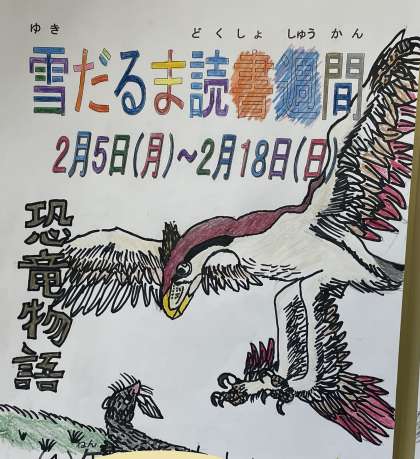 2/5(月)から2/18(日)は雪だるま読書週間です。4年生が作ってくれた読書週間ポスターを紹介します。