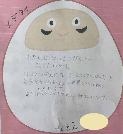 3年生の教室の掲示物を紹介します。将来の夢について書かれていましたよ。みんなはどんな夢をもっているかな。一歩ずつ未来に進んでいこうね!