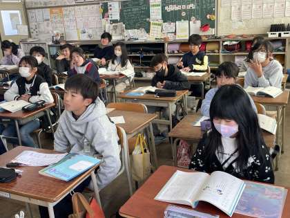 5年生の国語の授業のようすです。2つ以上の言葉が結びついて新たな言葉になる複合後について学んでいました。