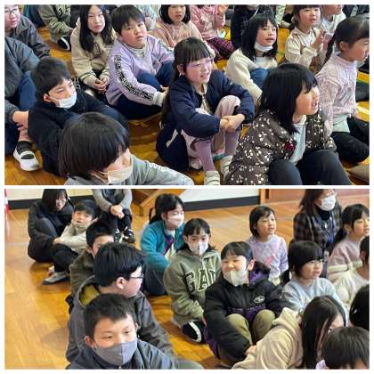 2月9日(金) ひまわり組さん アウトリーチ演奏会 公開日 2024/02/09 更新日 2024/02/09 ひまわり組 手拍子したりリズムにのって体を動かしたりして、楽しい時間を過ごすことができましたね。