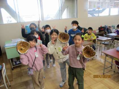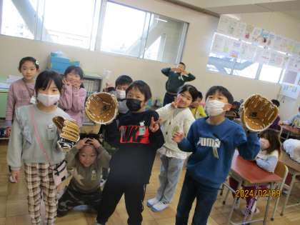 2月11日(日・祝) 2年大谷選手のグローブが教室にやってきた! 公開日 2024/02/11 更新日 2024/02/11 2年 先週の2年生の教室のようすです。大谷選手のグローブのはめごこちはどうだったかな?ひがしっ子も自分の夢に向かってがんばろうね!
