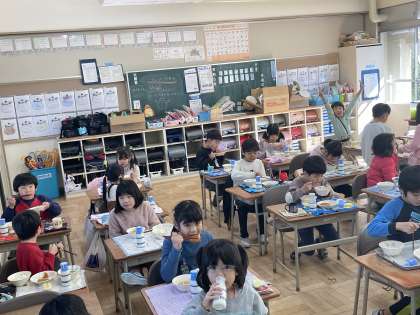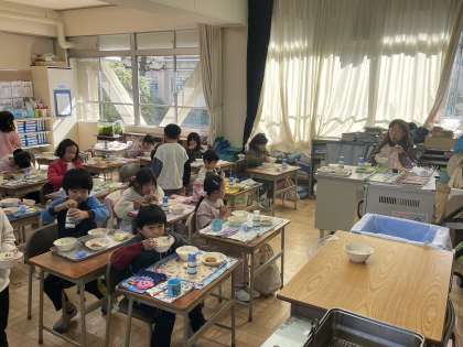 1年1組の給食の時間のようすスナップです!