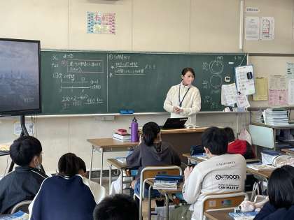 5年生の算数の授業のようすです。「速さと時間から道のりを求めよう」というめあてで学習を進めていました。